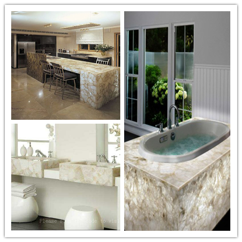 半宝石饰面石材用的宝石是首饰行业的主要原料,由于其材质及其稀少于珍贵,颜色天然独特,纹路大气磅礴,硬度大,光泽度高,手感坚实细腻,晶莹玉润,总之半宝石饰面板效果堪称惊艳绝伦,美轮美奂,令人不由得驻足欣赏。不仅适于室内高级装饰,如酒店、会所、酒吧、私人豪宅等,又适用于高级家具等饰面。